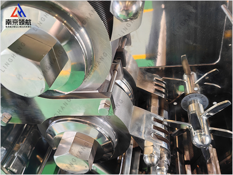 3、压轮上下布置,消除了重力对物料的影响,保障了物料压片前的均匀性;